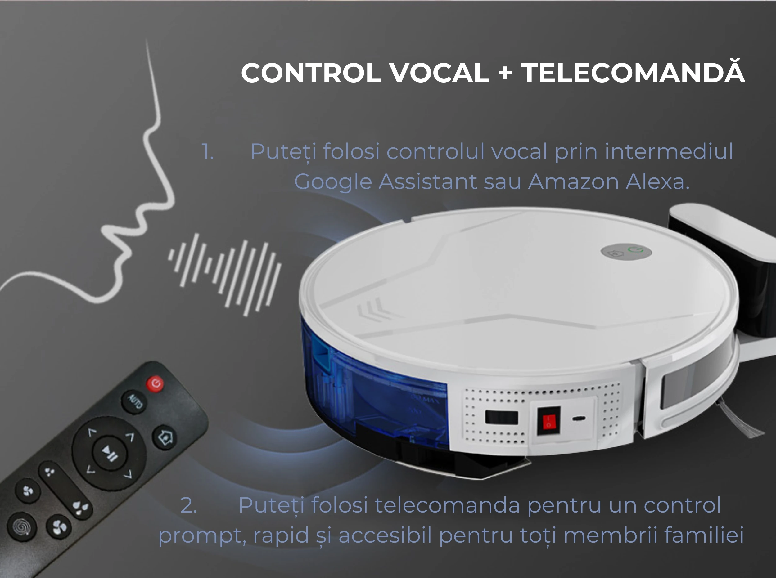 Tehnologia avansata iti permite sa controlezi aspiratorul de oriunde, prin Wi-Fi, folosind aplicatiile Tuya Smart sau Smart Life. Poti sa-l pornesti, sa-l opresti, sa setezi programele de curatare sau sa verifici starea acestuia chiar si cand esti la serviciu sau in vacanta. De asemenea, compatibilitatea cu Alexa si Google Assistant iti ofera confortul controlului vocal, transformand curatenia intr-o sarcina complet hands-free. Spui doar „Alexa, porneste aspiratorul!” si casa ta incepe sa straluceasca.